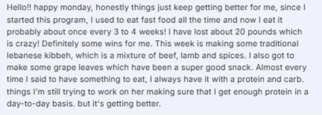 A recent client came to us eating fast food all the time, multiple times a week and struggling to lose weight, feeling uncomfortable in her body. Since joining the Hormone Reset Program®, she’s only eating fast food once or twice a month and she has lost about 20 pounds!